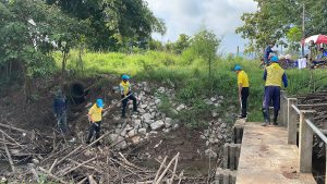 โดยการอำนวยการของ พ.ต.ท.อนุพนธ์ สนิท รอง ผกก.ป. รรท.ผกก.สภ.จุน,พ.ต.ท.นัฐพล กันวีเงิน สวป.สภ.จุน มอบหมายให้ ร.ต.อ.สัมพันธ์ ทะลือ รอง สวป./หัวหน้าชุดชมส.สภ.จุน พร้อมชุดจิตอาสา สภ.จุน ร่วมกับ นายเสกสรรค์ คำแดง ผู้ใหญ่บ้าน บ้านฝั่งหมิ่น หมู่ 8 ต.ห้วยยางขาม อ.จุน จว.พะเยา พร้อมผู้ช่วยผู้ใหญ่บ้านและประชาชนจิตอาสา ร่วมทำจิตอาสา”เราทำความดีเพื่อ ชาติ ศาสน์ กษัตริย์“ พัฒนาฝายกั้นลำน้ำจุนบ้านฝั่งหมิ่น ม.6 ต.ห้วยยางขาม อ.จุน จว.พะเยา