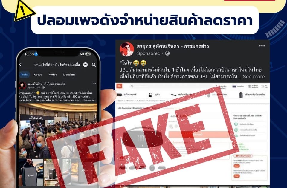 สืบเนื่องจากช่วงนี้พบมิจฉาชีพสร้างเฟซบุ๊กแฟนเพจปลอมขึ้นมาเลียนแบบเพจดังต่างๆ แล้วบูสต์โพสต์ด้วยการยิงโฆษณาพร้อมลงข้อความขายสินค้าแบรนด์ดังต่างๆ ไม่ว่าจะเป็นเครื่องใช้ไฟฟ้า ของสะสมประเภท ARTTOY รวมทั้งโรงแรมที่พัก หรือ สินค้าและบริการประเภทอื่นๆ ที่ประชาชนให้ความสนใจ พร้อมแนบลิงก์ปลอมให้กด