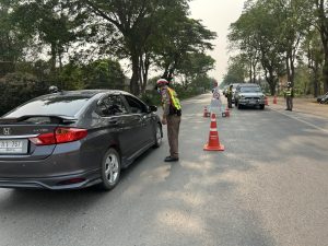 ร่วมกันตั้งจุดตรวจกวดขันวินัยจราจร เพื่อป้องกันและลดอุบัติเหตุบนถนนสายพะเยา-เชียงคำ