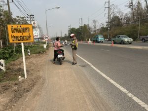 ร่วมกันตั้งจุดตรวจกวดขันวินัยจราจร เพื่อป้องกันและลดอุบัติเหตุถนนสายจุน-ปงหน้าปั้มน้ำมัน ปตท.จุน
