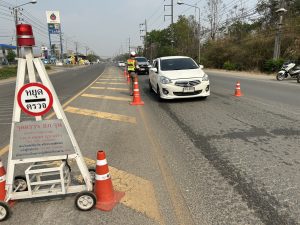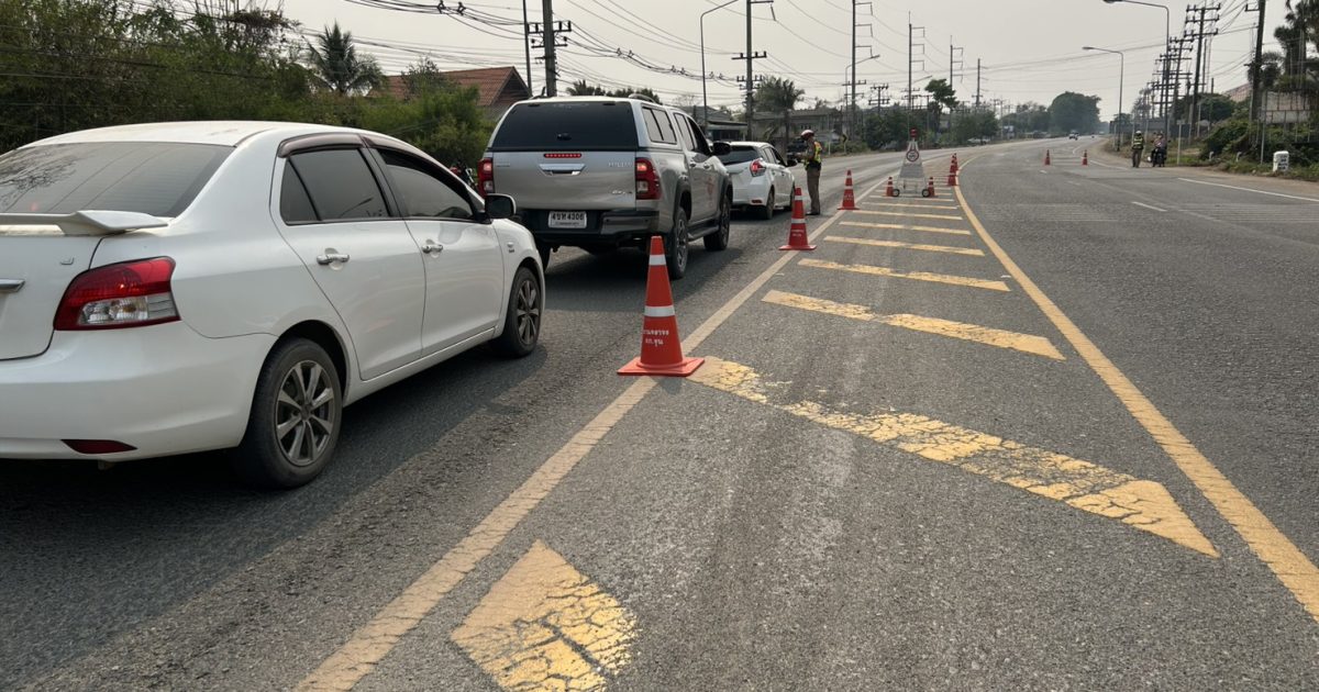 ร่วมกันตั้งจุดตรวจกวดขันวินัยจราจร เพื่อป้องกันและลดอุบัติเหตุถนนสายจุน-ปงหน้าปั้มน้ำมัน ปตท.จุน