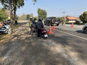 ได้ร่วมกันตั้งจุดตรวจกวดขันวินัยจราจรและผู้ขับขี่เพื่อป้องกันและลดอุบัติเหตุบนถนนสายพะเยา-เชียงคำ บริเวณหน้าหมวดทางหลวงจุน