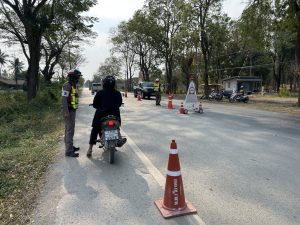 ได้ร่วมกันตั้งจุดตรวจกวดขันวินัยจราจรและผู้ขับขี่เพื่อป้องกันและลดอุบัติเหตุบนถนนสายพะเยา-เชียงคำ บริเวณหน้าหมวดทางหลวงจุน
