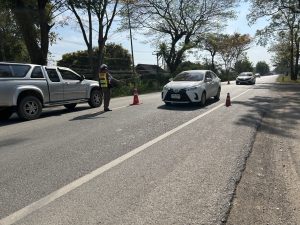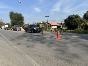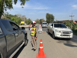 ได้ร่วมกันตั้งจุดตรวจกวดขันวินัยจราจรและผู้ขับขี่เพื่อป้องกันและลดอุบัติเหตุบนถนนสาย พะเยา-เชียงคำ บริเวณหน้าหมวดทางหลวงจุน
