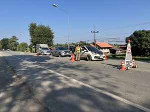 ได้ร่วมกันตั้งจุดตรวจกวดขันวินัยจราจร ถนนสายจุน-ปง บริเวณหน้าหมวดทางหลวงจุน