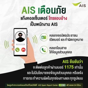 โดยลูกค้าสามารถแจ้งรีพอร์ตกรณีนี้และอื่นๆได้ที่ AIS Spam Report Center 1185 ฟรี ตลอด 24 ชั่วโมง