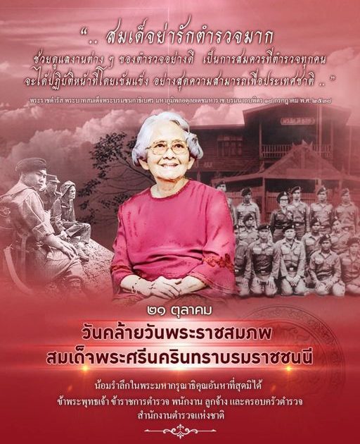สมเด็จย่ารักตำรวจมาก ช่วยดูแลงานต่าง ๆ ของตำรวจอย่างดี เป็นการสมควรที่ตำรวจทุกคน จะได้ปฏิบัติหน้าที่โดยเข้มแข็ง อย่างสุดความสามารถเพื่อประเทศชาติ .. ” พระราชดำรัส พระบาทสมเด็จพระบรมชนกาธิเบศร มหาภูมิพลอดุลยเดชมหาราช บรมนาถบพิตร ๑๘ กรกฎาคม พ.ศ. ๒๕๓๘