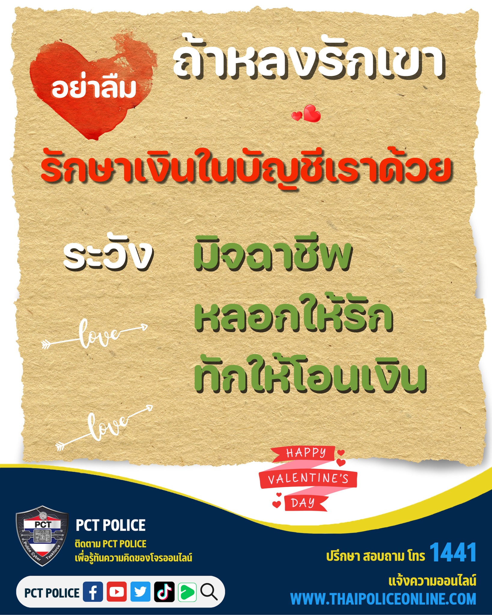 เตือนภัย!! หลอกรักออนไลน์วาเลนไทน์นี้ สแกนดี ๆ เขา “คลั่งรัก” หรือ “แค่หลอกดูดเงิน” จากเรา “รองฯ ลูก
