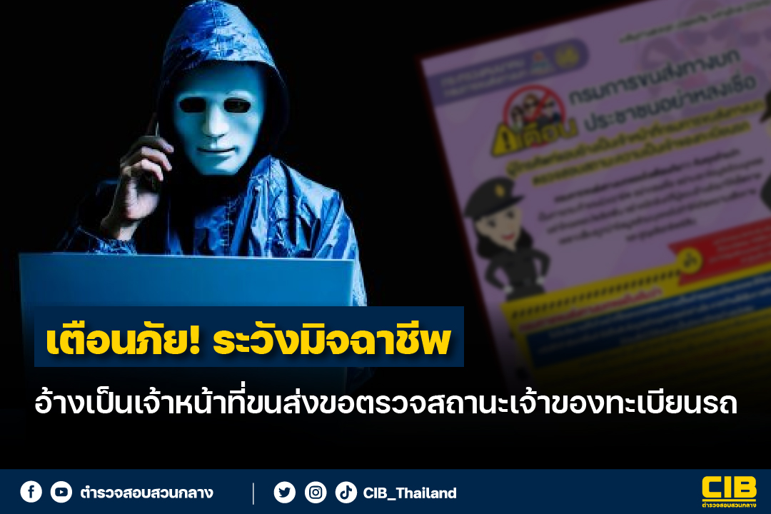 เตือนภัย! ระวังมิจฉาชีพ อ้างเป็นเจ้าหน้าที่ขนส่งขอตรวจสถานะเจ้าของทะเบียนรถ . ในขณะนี้มีมิจฉาชีพ แอบ