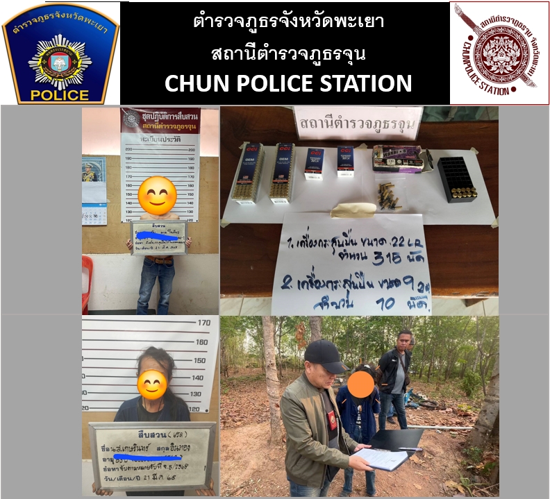 วันที่ 21 มี.ค.68 เวลา 10.00 น. ตำรวจ สภ.จุน จับกุมผู้ต้องหาคดีมีเครื่องกระสุนปืนไว้ในครอบครองโดยไม่