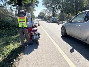 ได้ร่วมกันตั้งด่านกวดขันวินัยจราจร 10 ข้อหาหลัก รถจักรยานยนต์ที่มีการปรับแต่งดัดแปลงสภาพ และลดอุบัติเหตุ ถนนสายพะเยา-เชียงคำ หน้าหมวดทางหลวงจุน