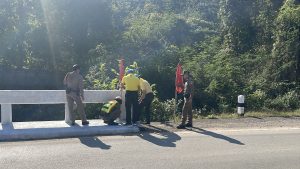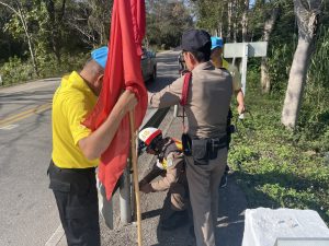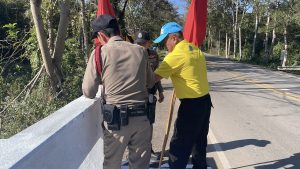 โดยการอำนวยการของ พ.ต.ท.อนุพนธ์ สนิท รอง ผกก.ป. รรท.ผกก.สภ.จุน ,พ.ต.ท.นัฐพล กันวีเงิน สวป.สภ.จุน มอบหมายให้ ร.ต.อ.สัมพันธ์ ทะลือ รอง สวป./หน.ชมส.สภ.จุน พร้อมชุดจิตอาสา,ร.ต.อ.อดุลย์ ธุระเสร็จ รอง สวปฯ/หน.ชุด จราจร พร้อมชุดจราจร และสายตรวจตำบลห้วยข้าวก่ำ จัดกิจกรรมจิตอาสา “เราทำความดีเพื่อ ชาติ ศาสน์ กษัตริย์” จิตอาสาปรับปรุงภูมิทัศน์ ติดป้าย ปักธงเตือนภัยจุดเสี่ยง เพื่อลดอุบัติเหตุทางถนนในช่วงเทศกาลปีใหม่ 2568 ณ ถนนสายดอกคำใต้-จุน อ.จุน จว.พะเยา ผลการปฏิบัติเป็นไปด้วยความเรียบร้อย