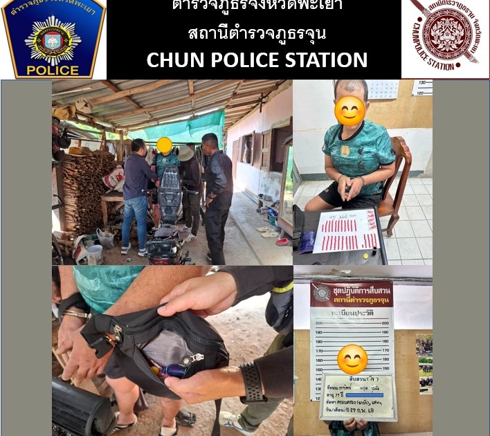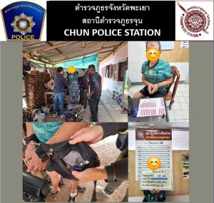 สถานที่จับกุม: บริเวณบ้านเลขที่ 68/1 ม.12 ต.ห้วยข้าวก่ำ อำเภอจุน จังหวัดพะเยา