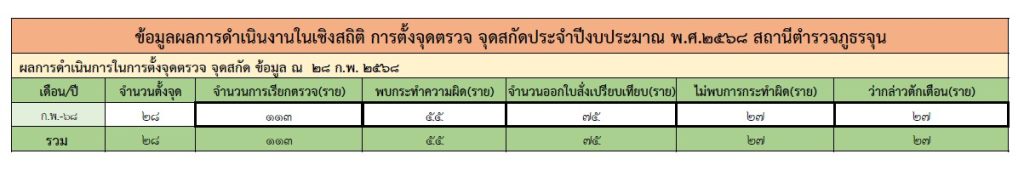 ข้อมูลผลการดำเนินงานในเชิงสถิติ การตั้งจุดตรวจ เดือน ก.พ.68 ไฟล์ PDF