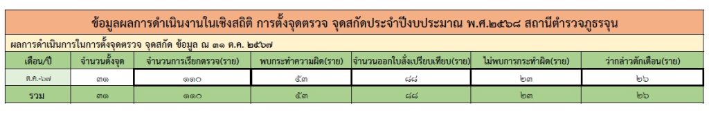 ข้อมูลผลการดำเนินงานในเชิงสถิติ การตั้งจุดตรวจ เดือน ต.ค.67 ไฟล์ PDF