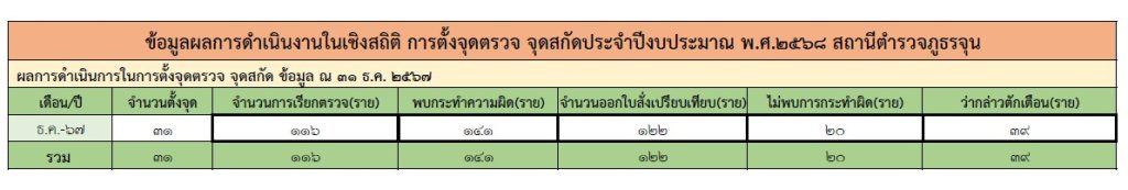 ข้อมูลผลการดำเนินงานในเชิงสถิติ การตั้งจุดตรวจ เดือน ธ.ค.67 ไฟล์ PDF