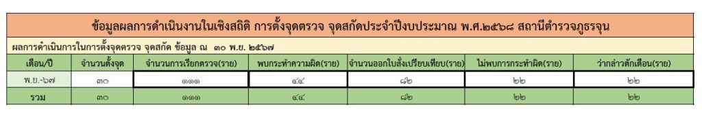 ข้อมูลผลการดำเนินงานในเชิงสถิติ การตั้งจุดตรวจ เดือน พ.ย.67 ไฟล์ PDF