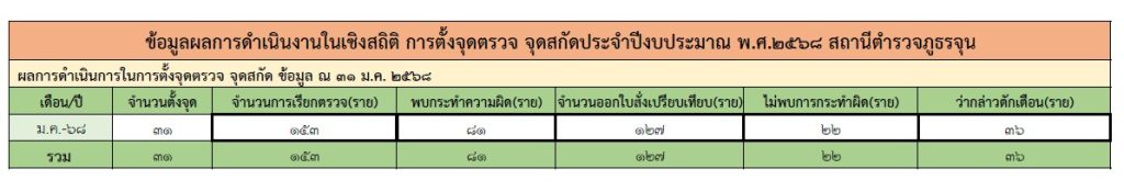 ข้อมูลผลการดำเนินงานในเชิงสถิติ การตั้งจุดตรวจ เดือน ม.ค.68 ไฟล์ PDF