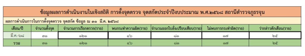 ข้อมูลผลการดำเนินงานในเชิงสถิติ การตั้งจุดตรวจ เดือน มี.ค.68 ไฟล์ PDF