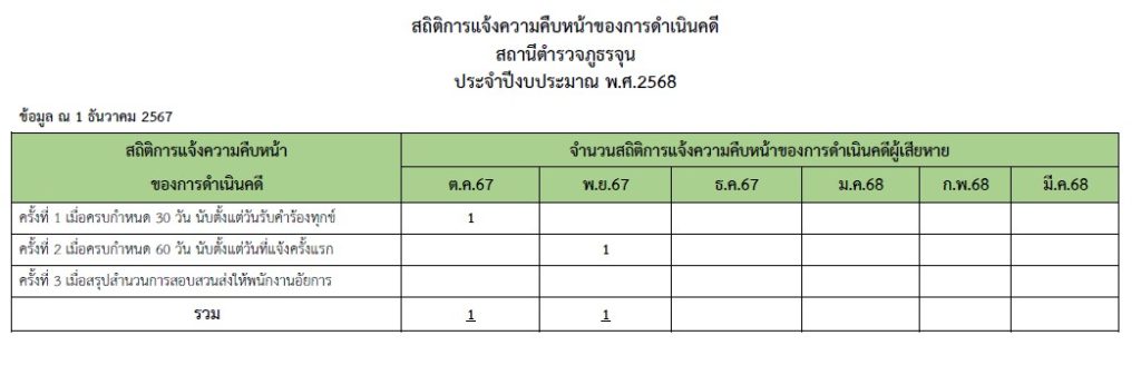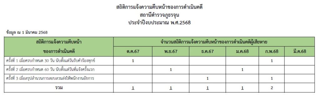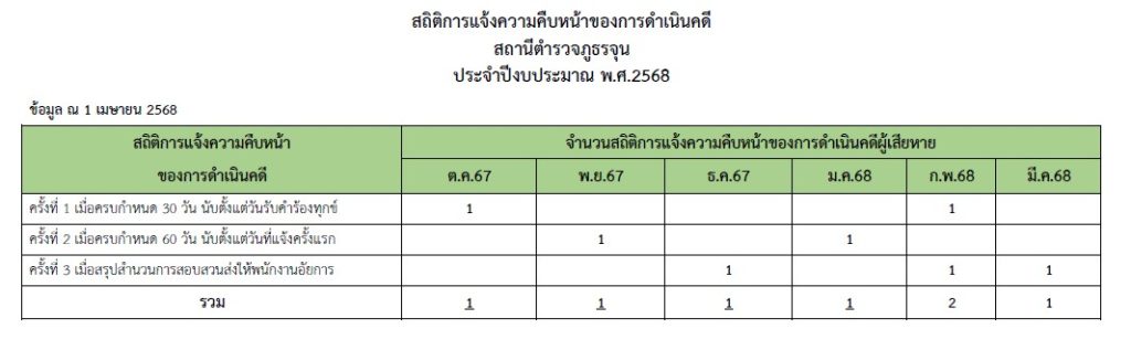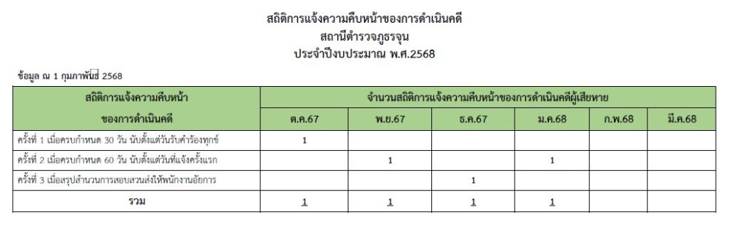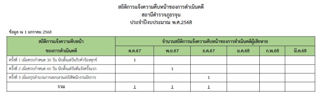 ข้อมูลผลการดำเนินงานในเชิงสถิติ การแจ้งความคืบหน้าของการดำเนินคดีผู้เสียหาย ประจำปีงบประมาณ พ.ศ.2568