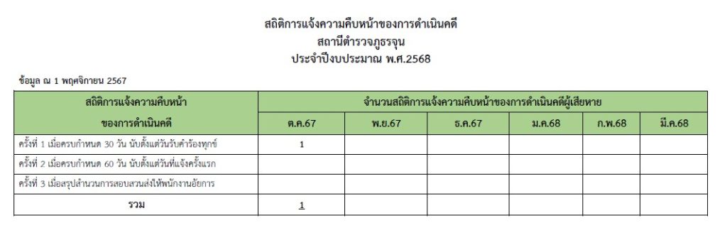 ข้อมูลผลการดำเนินงานในเชิงสถิติ การแจ้งความคืบหน้าของการดำเนินคดีผู้เสียหาย เดือน พ.ย.67 ไฟล์ PDF
