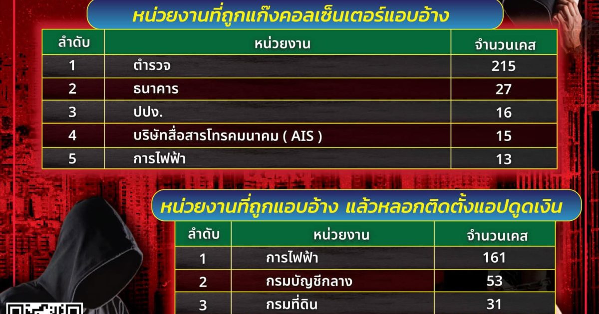 TOP5 หน่วยงานที่ถูกแก๊งคอลเซ็นเตอร์แอบอ้าง
